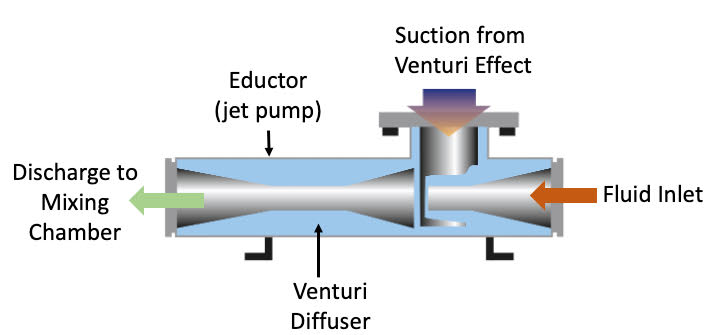 Our eductor system uses an elliptical Venturi to create powerful suction and mixing action. The jet nozzle design ensures consistent performance across varying flow rates and pressures.